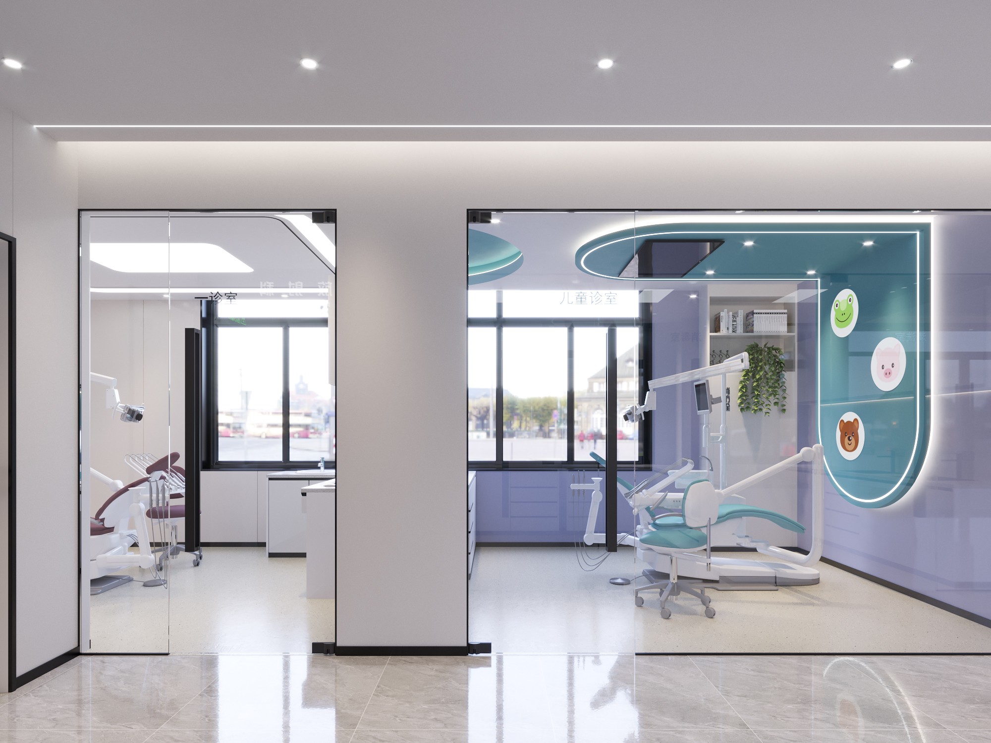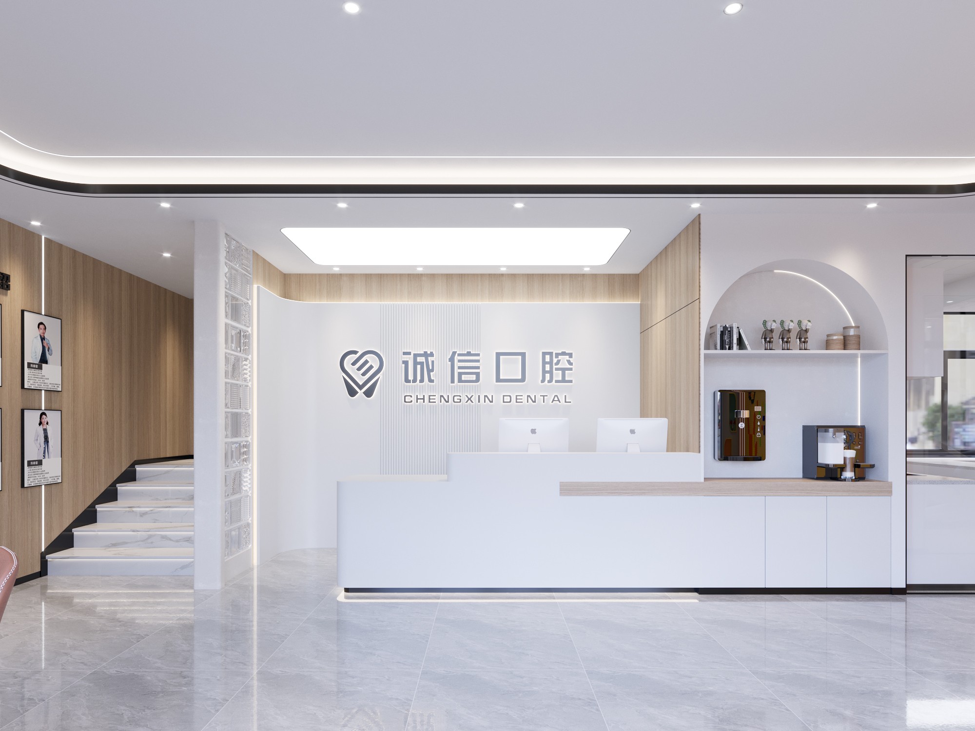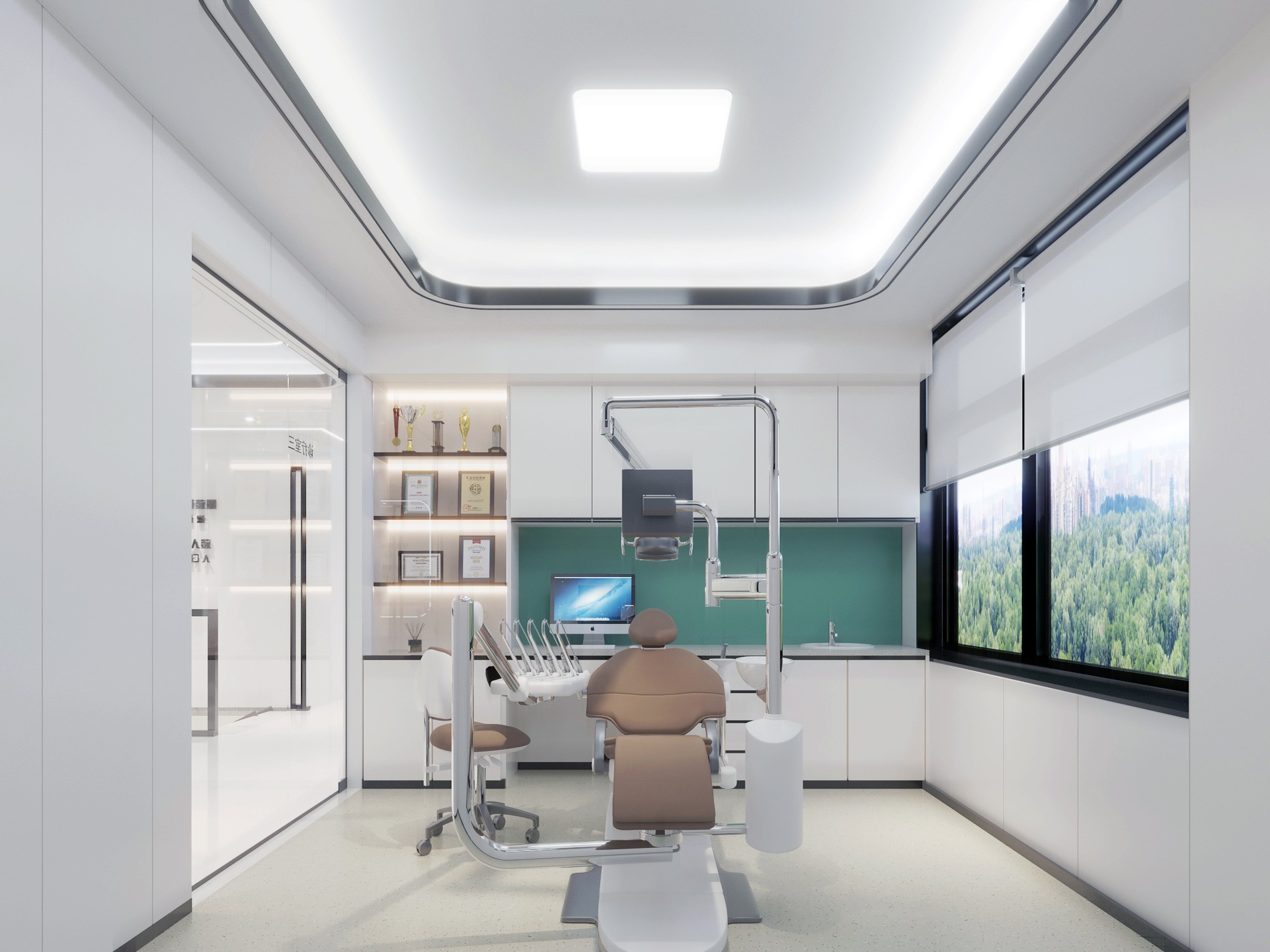 設計理念:融合科技質感的材料元素,強調收納設計的標準化,營造清新簡潔、光亮通透的空間氛圍,同時注重空間色彩搭配和細節處理,打破傳統醫療空間形象,呈現出新型高端醫療空間設計趨勢。將潔白、健康的護齒理念融合當代美學,在細節上強調收納設計的標準化,每個細微局部遵循“不多余、重質感”的裝飾原則,同時融入科技質感的材料元素,從設計語言上構建。